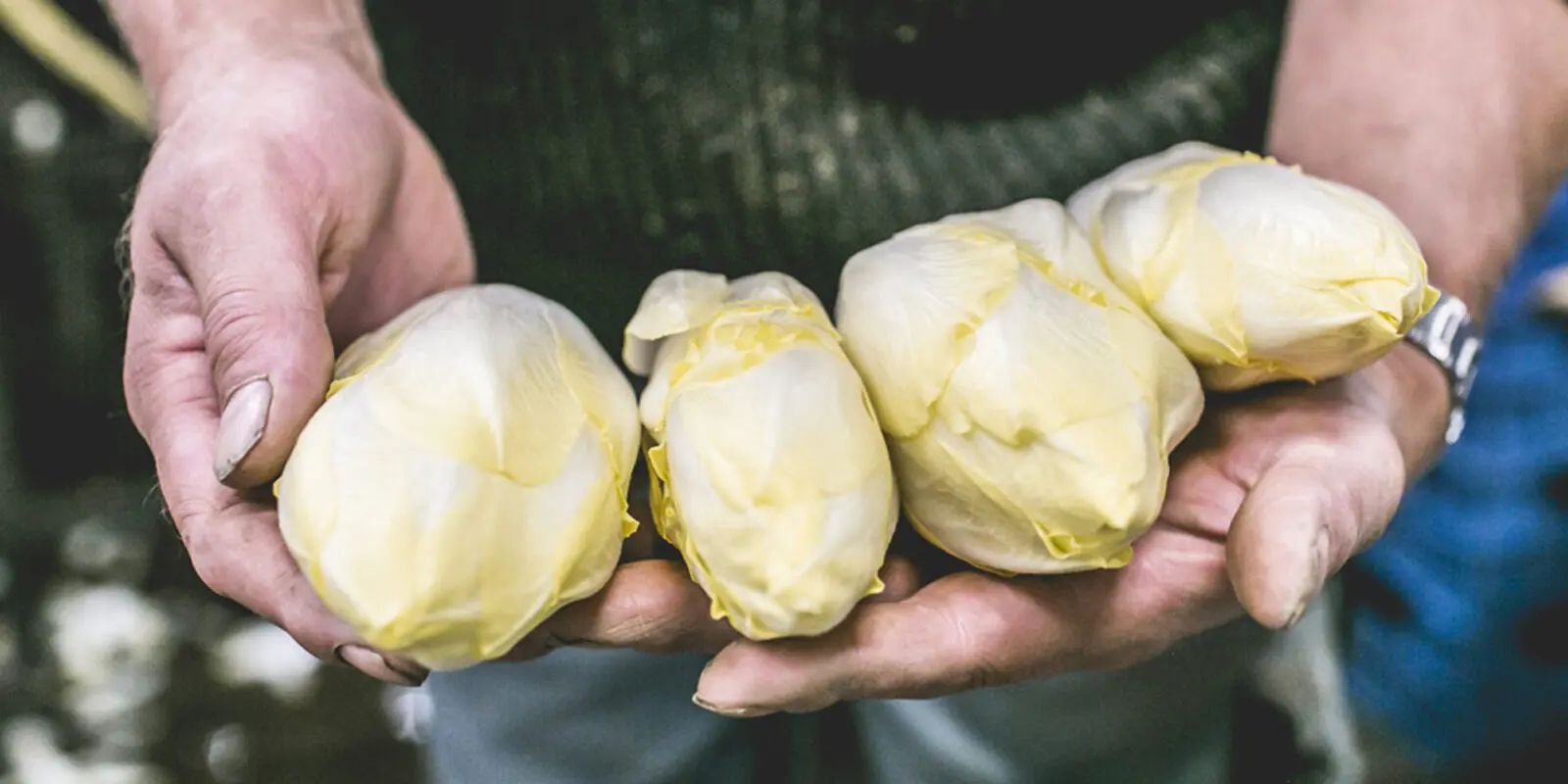 Wist je dat witlof ook wel ‘Brussels lof’ wordt genoemd? Witlof behoort tot dezelfde familie als roodlof en andijvie: de cichoreiachtigen. De mooie witte kleur krijgt de groente door de wortel van de witlofplant in het donker te laten uitlopen. Hierdoor krijgt het bladgroen geen kans zich te ontwikkelen.