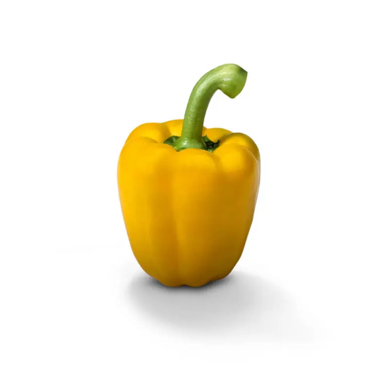 De gele paprika heeft een stevige vruchtwand. In de schil zit een witte kern waarin de zaden zich bevinden. De paprika's zoals wij ze allemaal kennen, worden vanwege hun vorm ook wel ‘blokpaprika's’ genoemd.