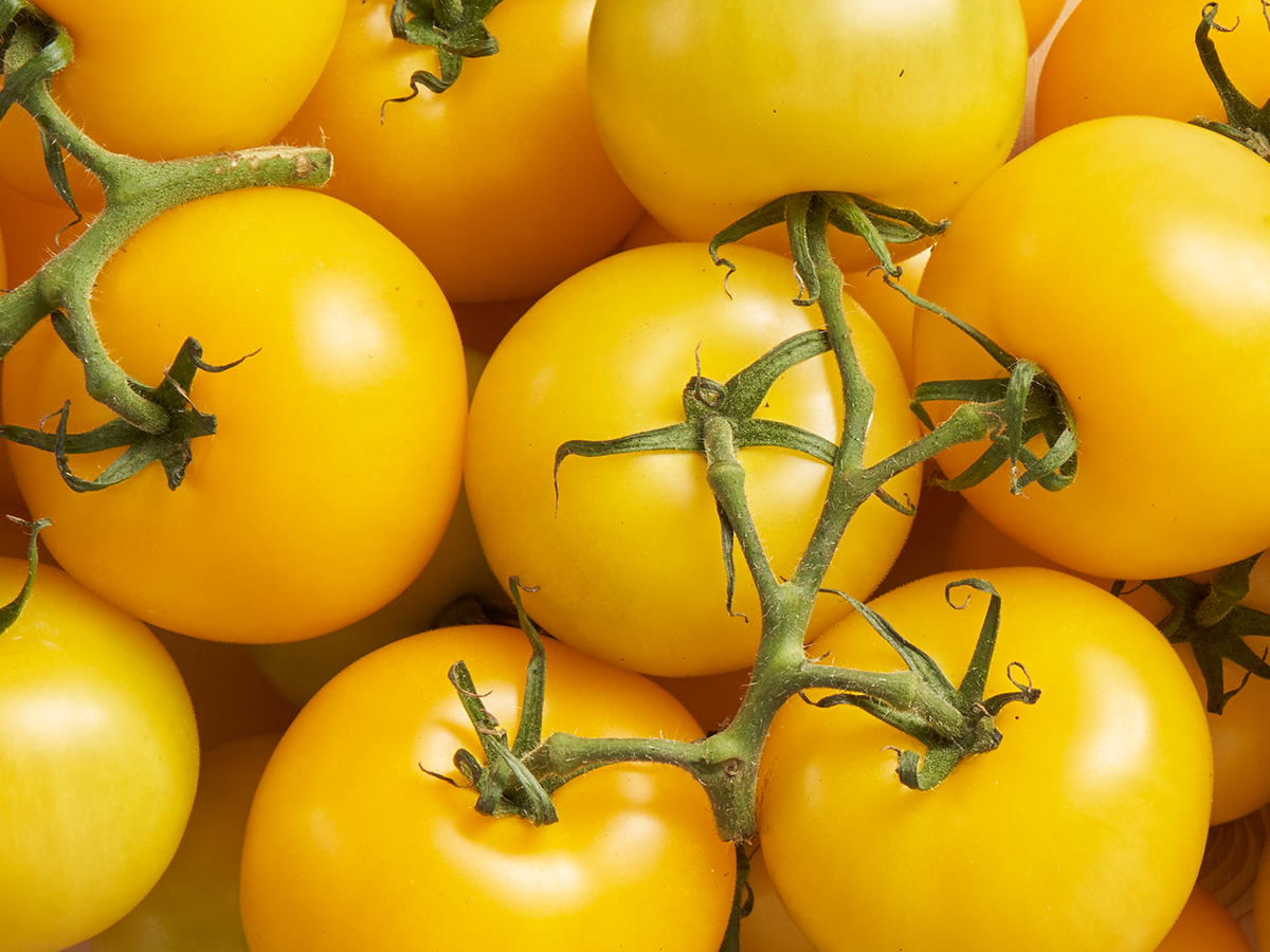 Gele trostomaten hebben door hun opvallende, natuurlijke kleur een bijzonder en wat exclusiever karakter dan hun rode soortgenoten. Ze geven een zonnig kleuraccent aan alle gerechten waarin ze worden verwerkt.