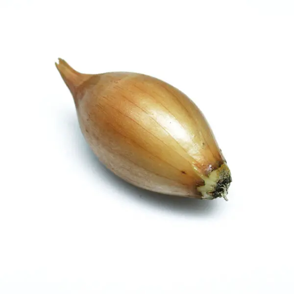 Bij aankoop hoort de sjalot droog en stevig te zijn. De bol moet glad zijn met een gave, glanzende schil zonder veel losse vellen.