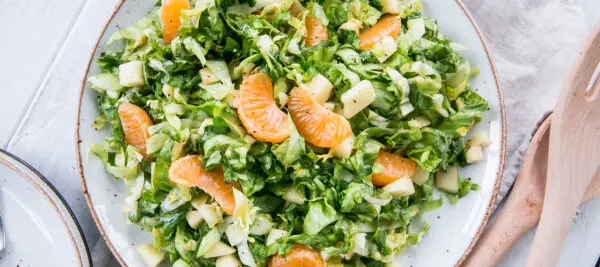 Zo krijg je je dagelijkse dosis fruit wel binnen: gewoon in de salade! Andijvie en appel zijn een goede combinatie samen met de mandarijn partjes. Je kunt ook sinaasappelpartjes gebruiken!