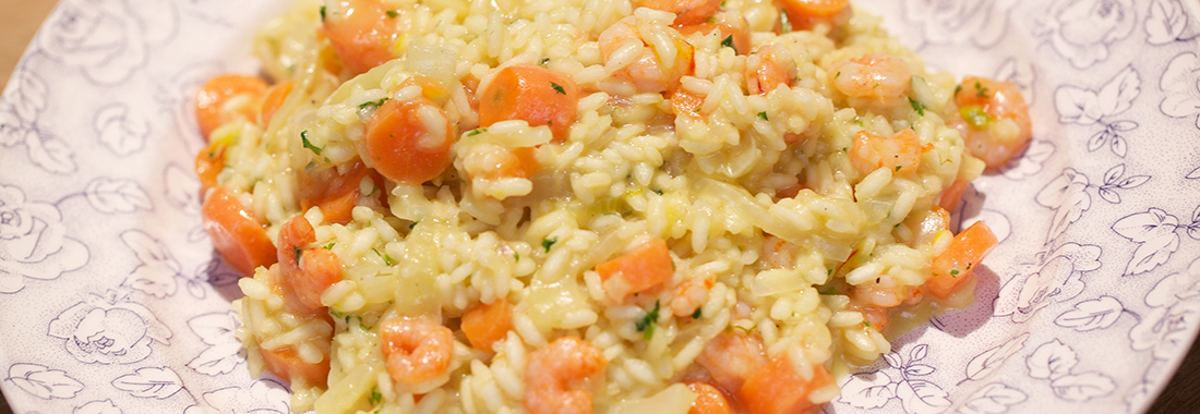 Voeg de waspenen, venkel, saffraan en de risottorijst toe en bak circa 3 minuten. Schenk de witte wijn erbij en roer door. Schenk beetje bij beetje de kokende bouillon op de risotto. Herhaal dit tot de rijst gaar is in circa 20 minuten.
