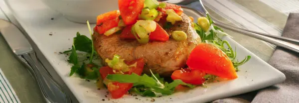 Snijd de tomaten kruislings in en leg ze vervolgens 30 seconden in kokend water. Haal ze uit het water, laat ze schrikken onder de koude kraan en verwijder het vel. Verdeel de tomaten in vieren, verwijder de pitjes en de steelaanzet en snijd ze in grove blokjes.