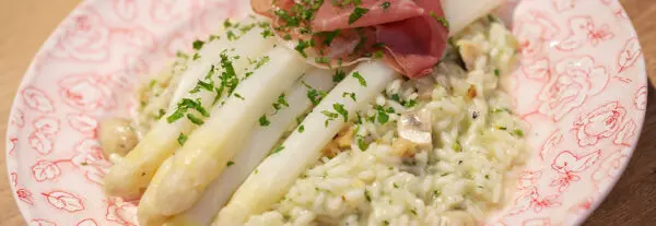 Hazelnotenrisotto met witte asperges