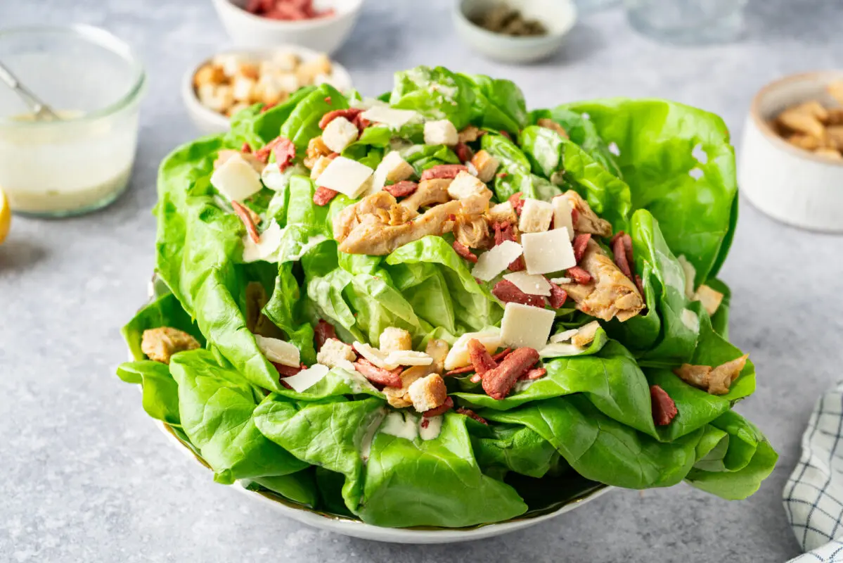 We kennen loaded fries, maar wat dacht je van een gezonde loaded kropsla? Deze grote loaded caesar kropsla is niet alleen een erg lekker voorgerecht: het ziet er ook nog eens feestelijk uit op tafel. Tot je ‘m aansnijdt natuurlijk.