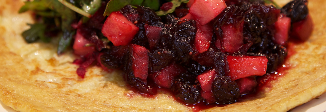Pastinaakpannenkoeken met appel-cranberrycompote