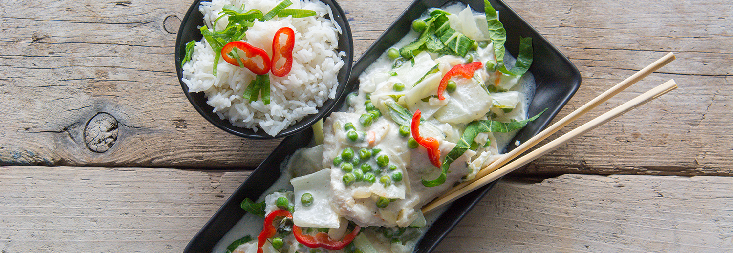 Pittige paksoi met rijst en vis