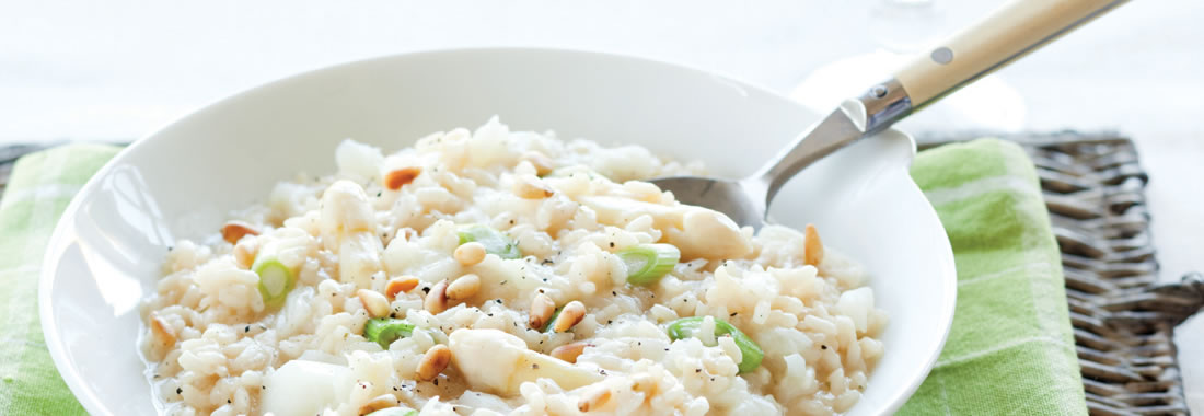 Hazelnotenrisotto met witte asperges Recept 20-30 min Lees meer over Hazelnotenrisotto met witte asperges