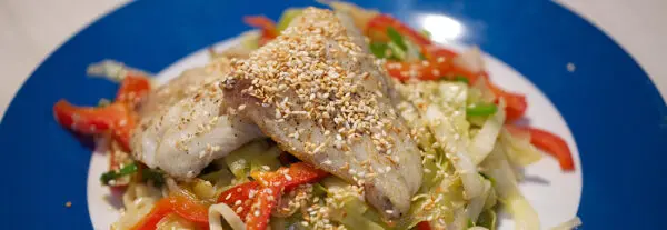 Verhit een scheutje olie in een wok en fruit de knoflook en de gember circa 2 minuten. Voeg de spitskool, bosuitjes en de paprika’s toe en roerbak circa 4 minuten. Breng het geheel op smaak met de sesamolie, oestersaus en een beetje versgemalen peper.