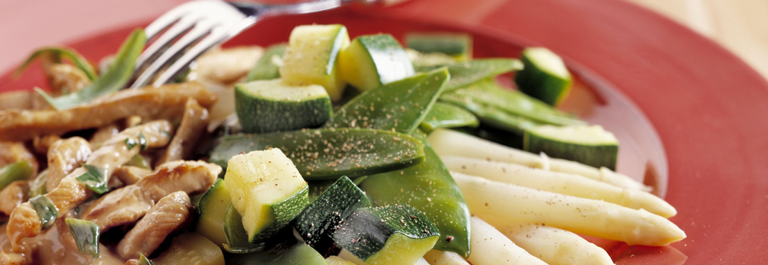 Voeg zout en een klontje boter toe en breng het water aan de kook. Kook de asperges 6 tot 10 minuten (afhankelijk van de versheid en de dikte van de asperges) op een laag vuur. Neem de pan van het vuur en laat de asperges, afgedekt, circa 20 minuten, doorgaren. Controleer of de asperges goed zijn door met een vork in de onderzijde te prikken. U moet enige weerstand voelen. Neem de asperges met een schuimspaan uit het kookvocht en laat ze uitlekken op wat keukenpapier.