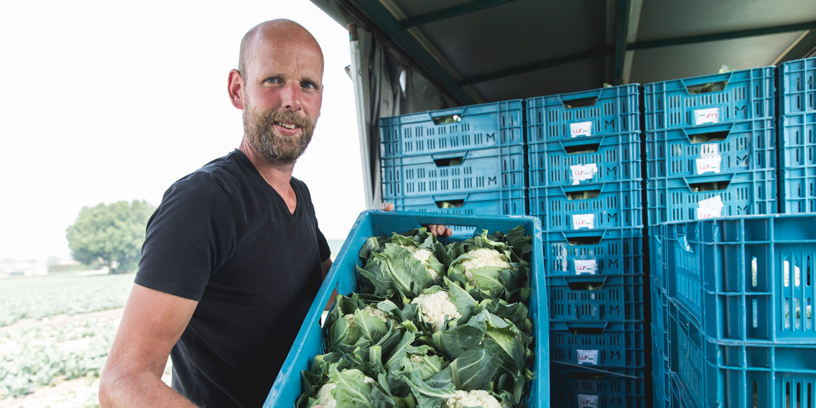 Op 1 maart beginnen we met het planten van de opgekweekte bloemkoolstekken. Deze zijn dan al biologisch behandeld zodat wij verder zo min mogelijk hoeven te behandelen. Van 1 april tot 10 november oogsten we vervolgens bijna elke dag. Bij bloemkool is dit alleen erg afhankelijk van het weer. In een warme periode kan de geplante bloemkool gaan wachten met het uitzetten van de kool, wat later zorgt voor uitstel. Het enige wat je hieraan kunt doen is zorgen dat je ‘snelle’ rassen teelt, dan heb je hier minder last van. Maar je moet dus best wel flexibel zijn als bloemkoolteler.